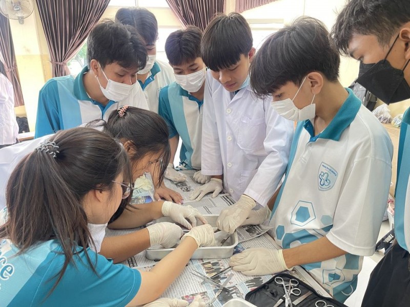 นักเรียนแผนการเรียนวิทยาศาสตร์สุขภาพ ระดับชั้น ม.6 ทำปฏิบัติการเรื่อง กายวิภาคศาสตร์ของกบ
