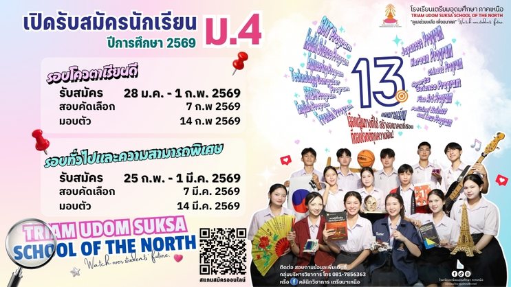 ประกาศรายชื่อนักเรียนที่สอบผ่านการคัดเลือกเข้าศึกษาต่อชั้นมัธยมศึกษาปีที่ 4 ประเภททั่วไป และความสามารถพิเศษ ปีการศึกษา 2569 10 มี.ค. 69